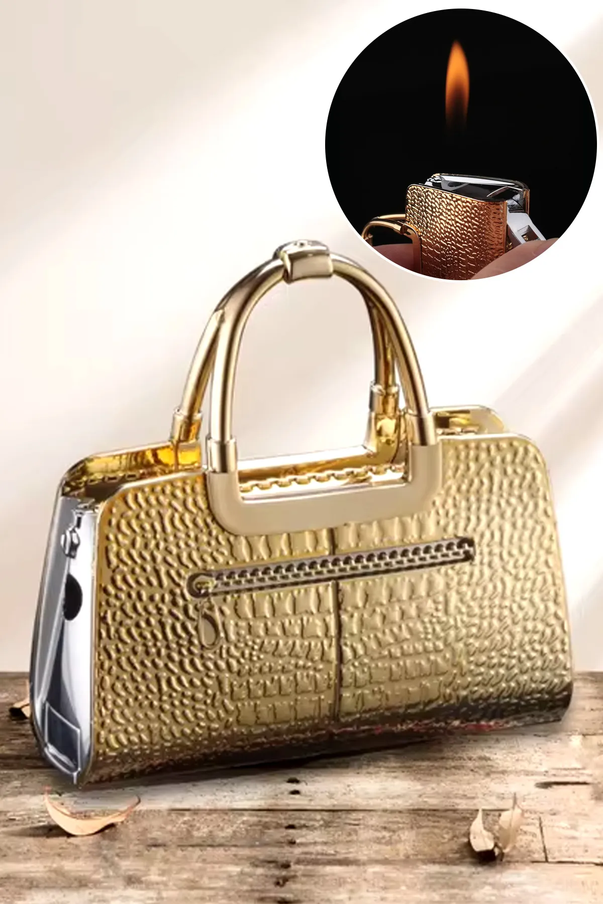 Hedgif Çanta Görünümlü Gazlı Çakmak Sarı Renk Özel Tasarım ; Gazlıdır tekrar dolum yapılabilir;