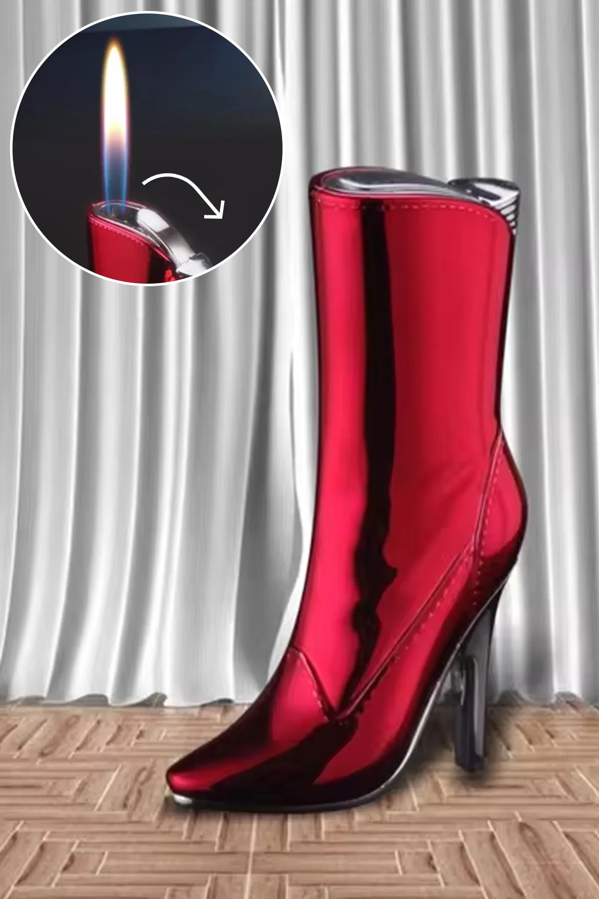 Çizme Görünümlü Gazlı Kırmızı Çakmak Özel Tasarım ; Gazlıdır tekrar dolum yapılabilir;