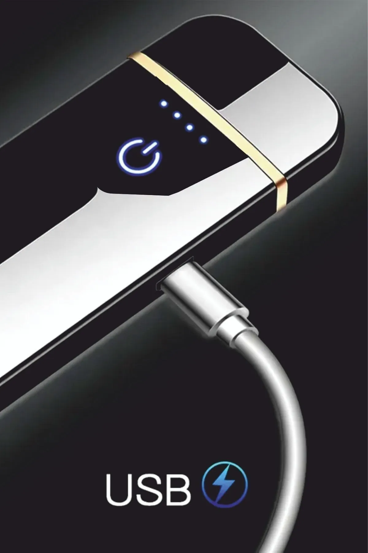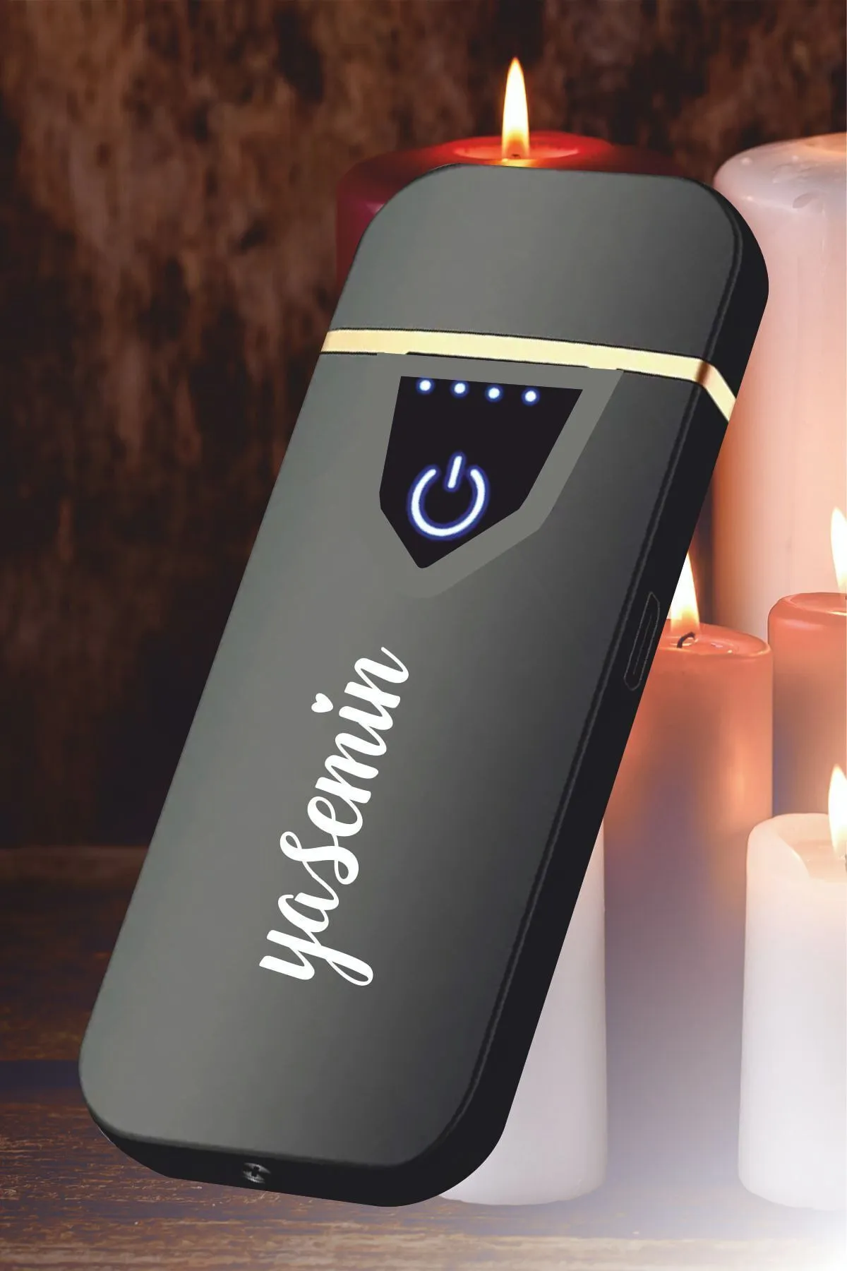 Kişiye Özel Baskılı Vip Alevsiz Çakmak Parmak Izi Dokunmatik Şarjlı Çakmak – Siyah
