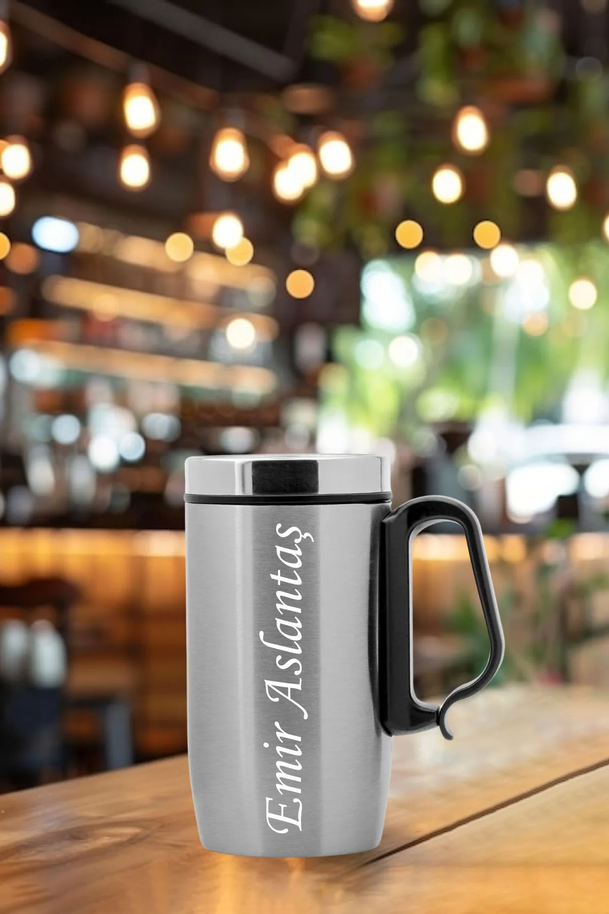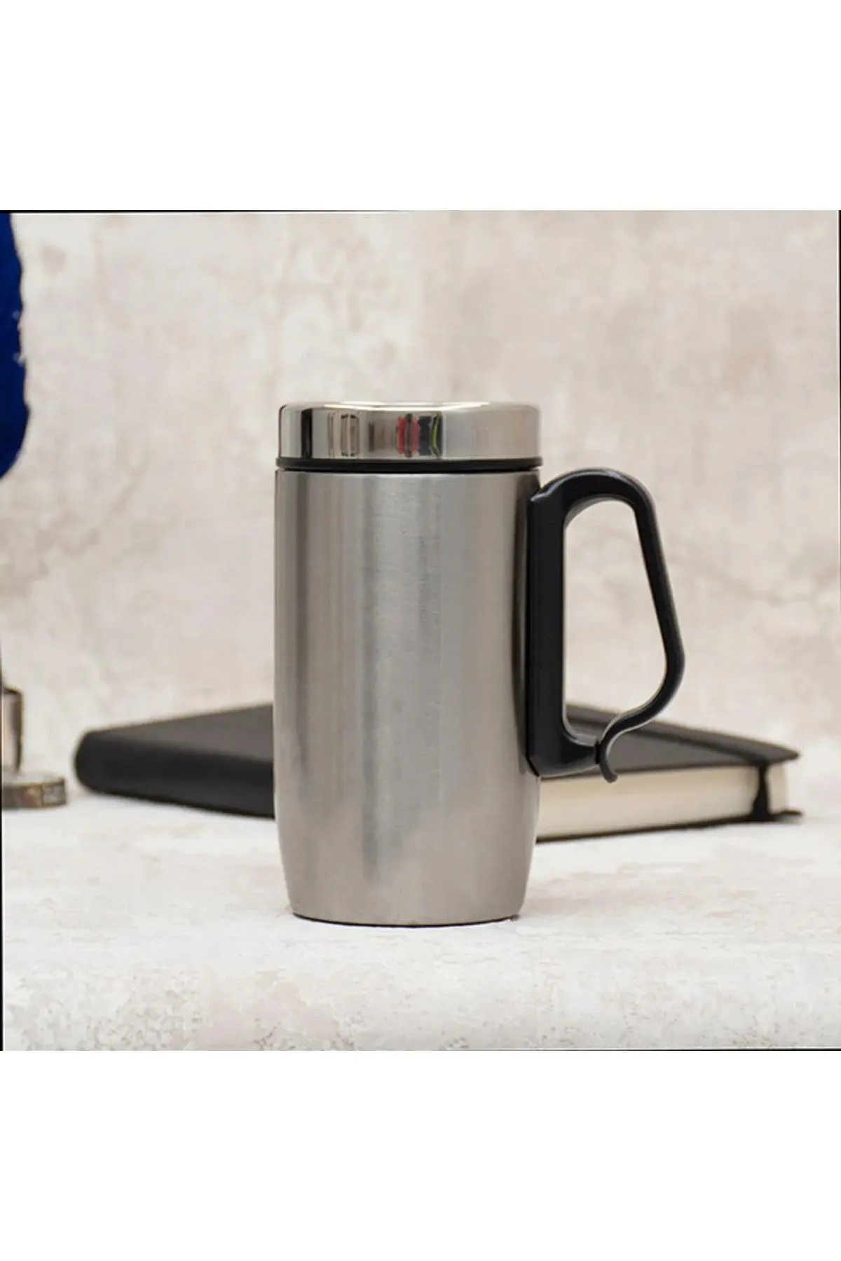 Kişiye Özel Çift Katmanlı 280ml Mat Siyah Kulplu Paslanmaz Çelik Termos Bardak Mug Kupa Çay Kahve