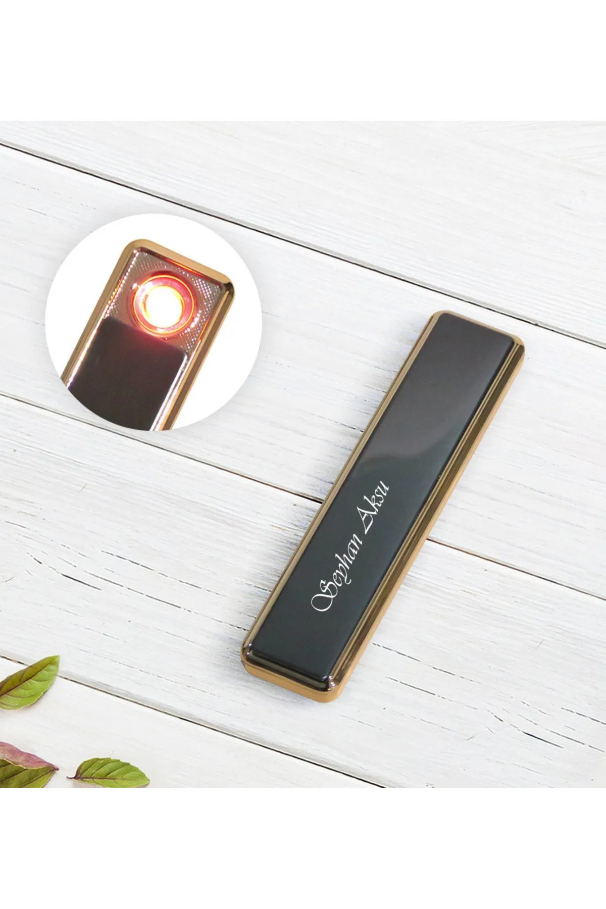 Kişiye Özel Isim Baskılı Çakmak Şarjlı Usb Li Siyah Elektronik Çakmak – Siyah