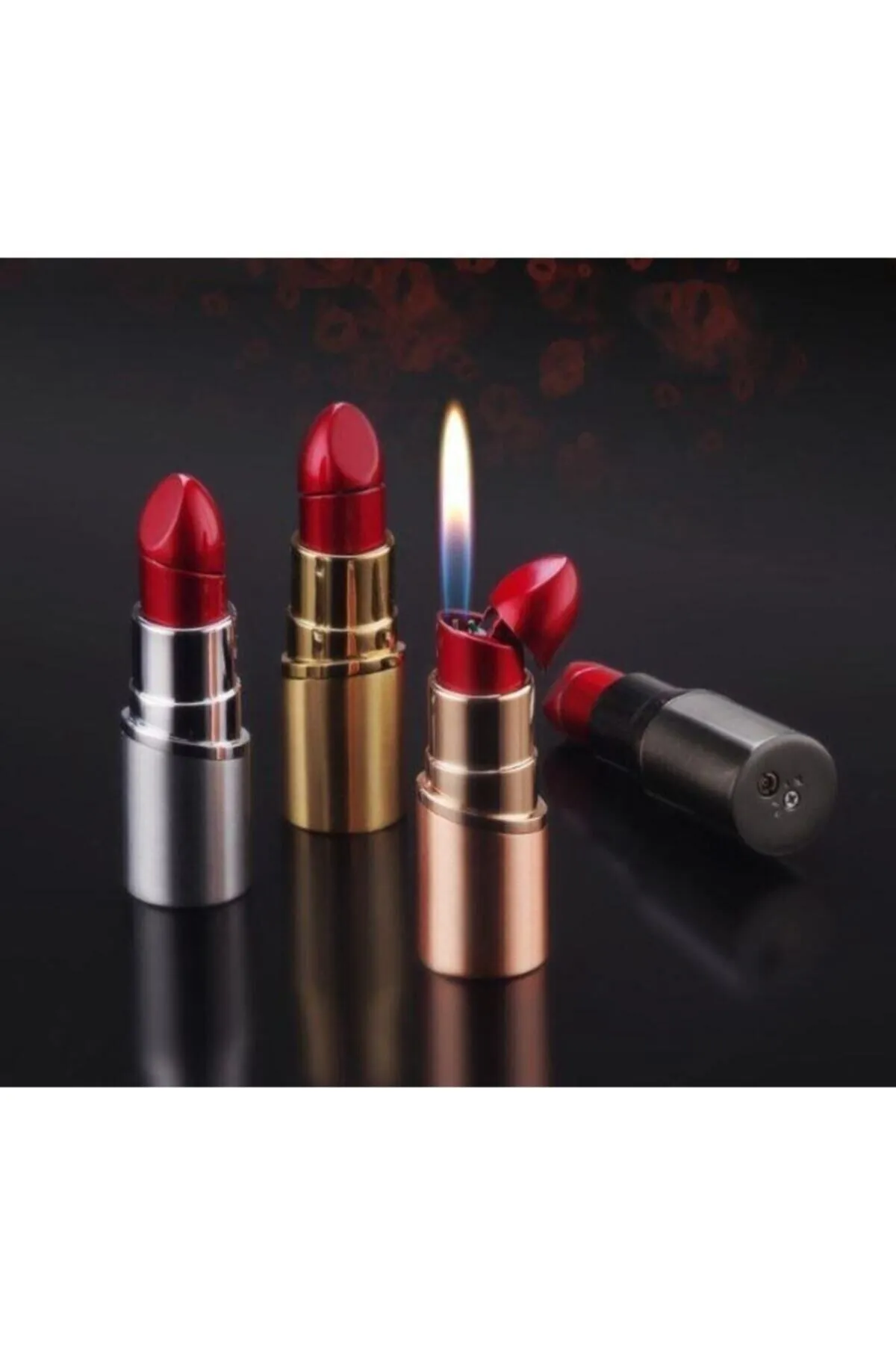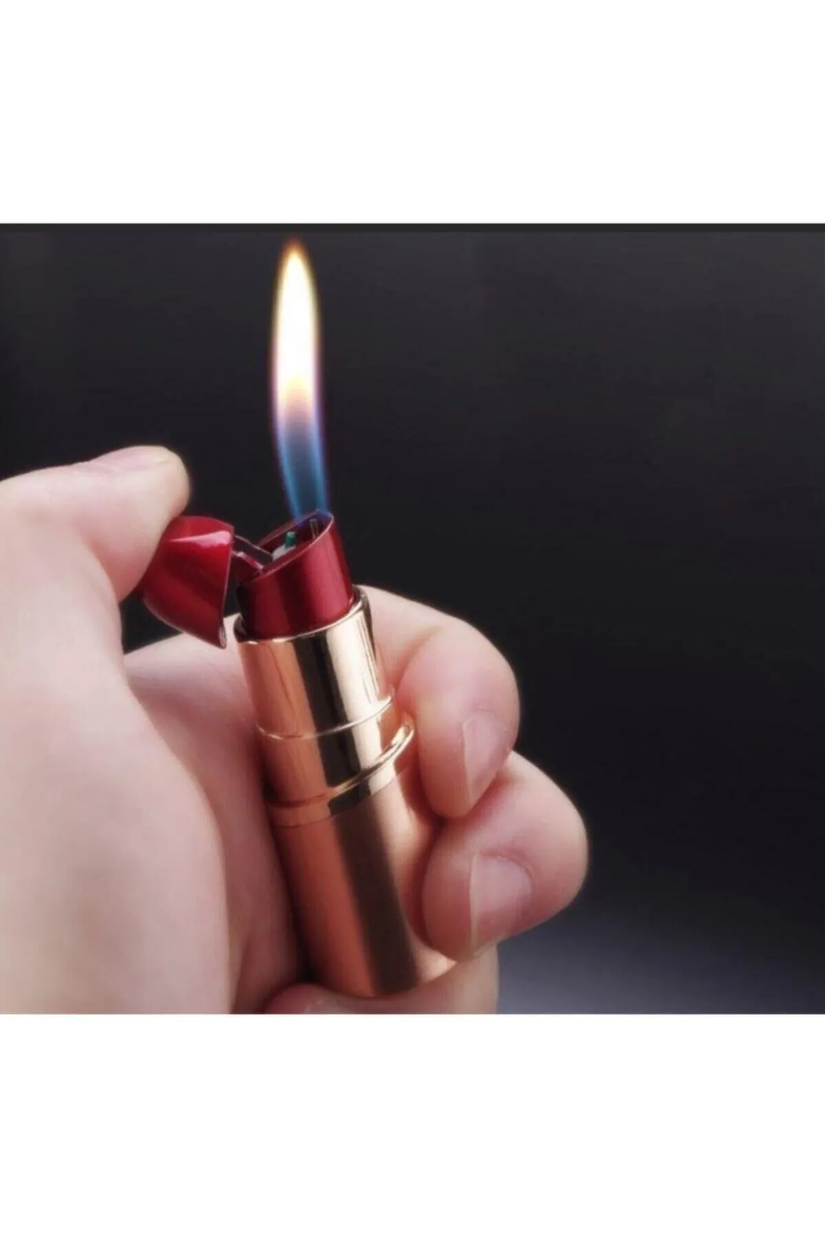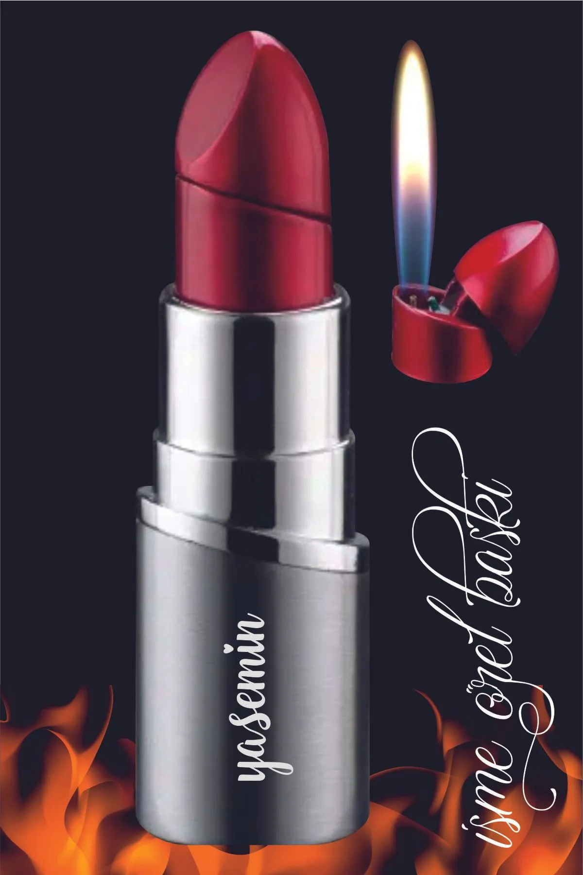 Kişiye Özel Isim Baskılı Ruj Şeklinde Bütan Gazlı Alevli Çakmak Mini Çanta Boyu Hediye Kutulu