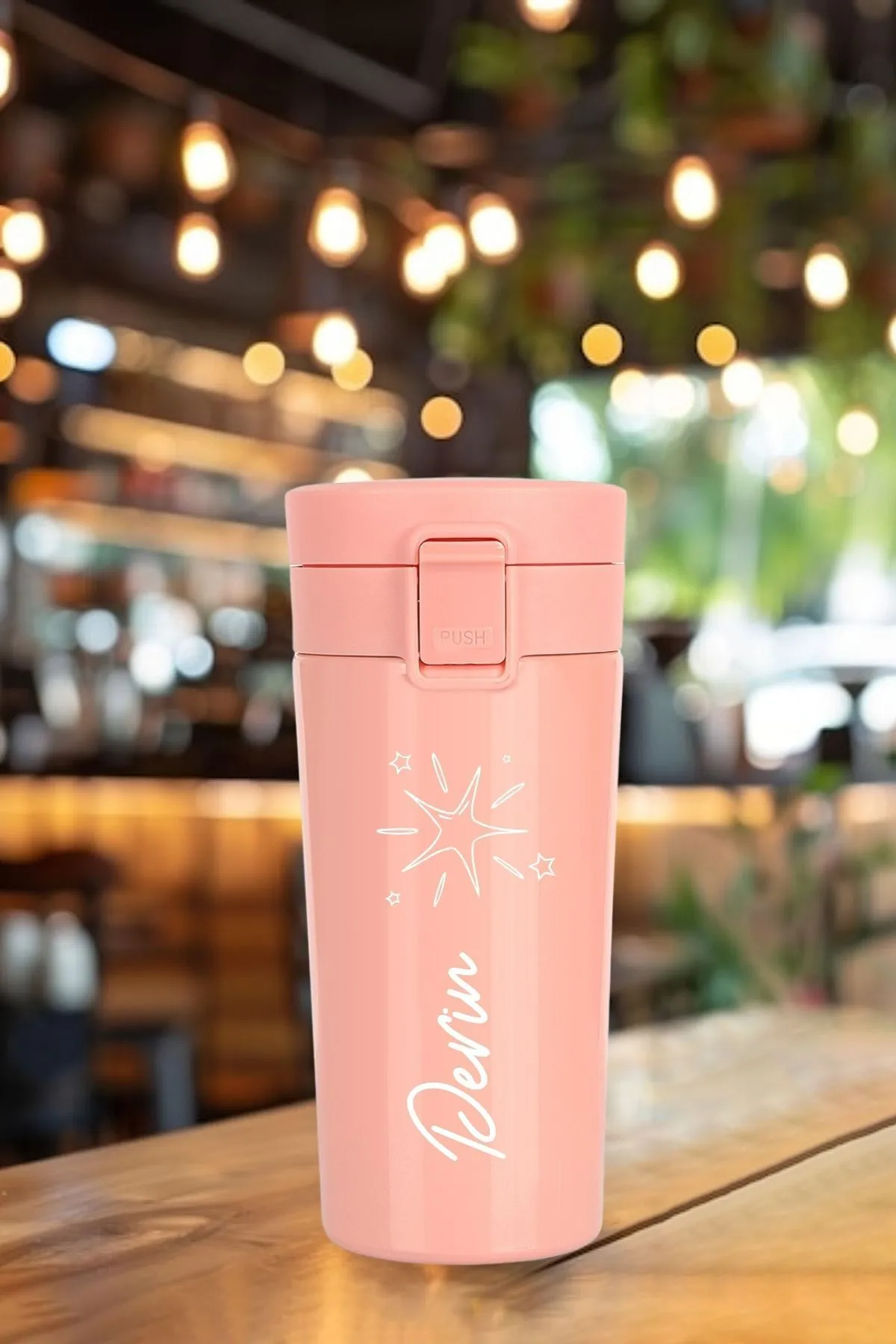 Kişiye Özel Isimli Baskılı Termos Filtreli 304 Paslanmaz Çelik Çift Katmanlı Sızdırmaz 380 ml Termos – Pembe