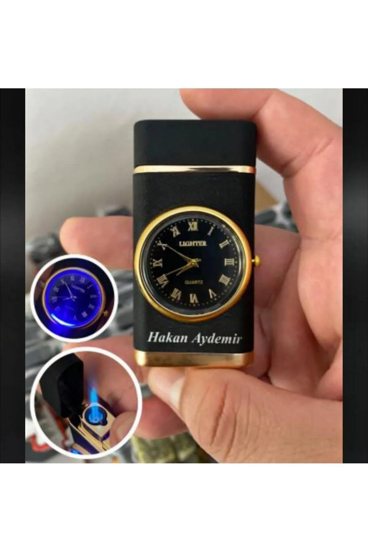 Kişiye Özel İsim Baskılı Özel Yapım Saatli Çakmak Turbo Işıklı Rüzgara Dayanıklı Çakmak NOT : Baskı yapılmasını istediğiniz ismi, ya da aklınıza takılan herhangi bir soruyu satıcıya sor bölümünden yada sipariş mesajları bölümünden bizlere iletebilirsiniz .; Çakmağımız turbodur.; Saati ayarlanabilir.; Sağ tarafında bulunan düğmeden istediğiniz zaman saat ayarlaması yapabilirsiniz.; Kullanımı basit ve şıktır.; Çakmağın alt kısmından (GAZ) dolumu yapabilirsiniz.; Çakmak kapağı açıldığında saatin etrafında ışık yanmaktadır.; özel günlerde sevdiklerinize hediye edebileceğiniz çok şık bir üründür.; Belirtilmeyen ürünlere isim yazılmamaktadır.; Ürünler kontrol edilerek gönderilir, isim yazılan ürünler de iade yoktur.; Kişiye özel baskılı ürünler sipariş verildikten sonra iade edilemez.