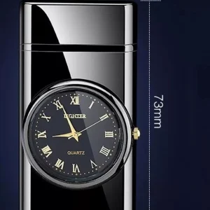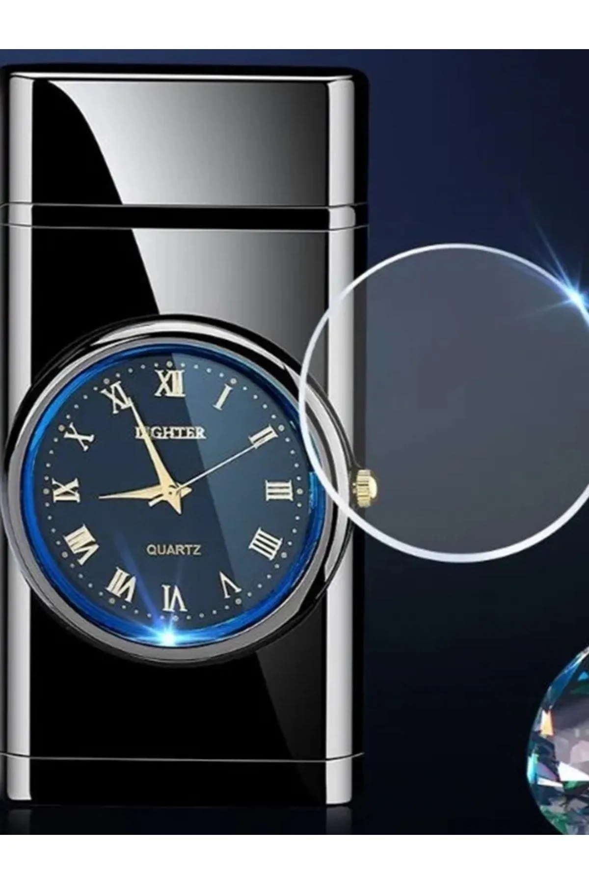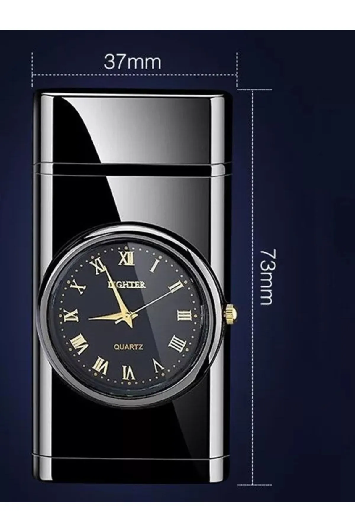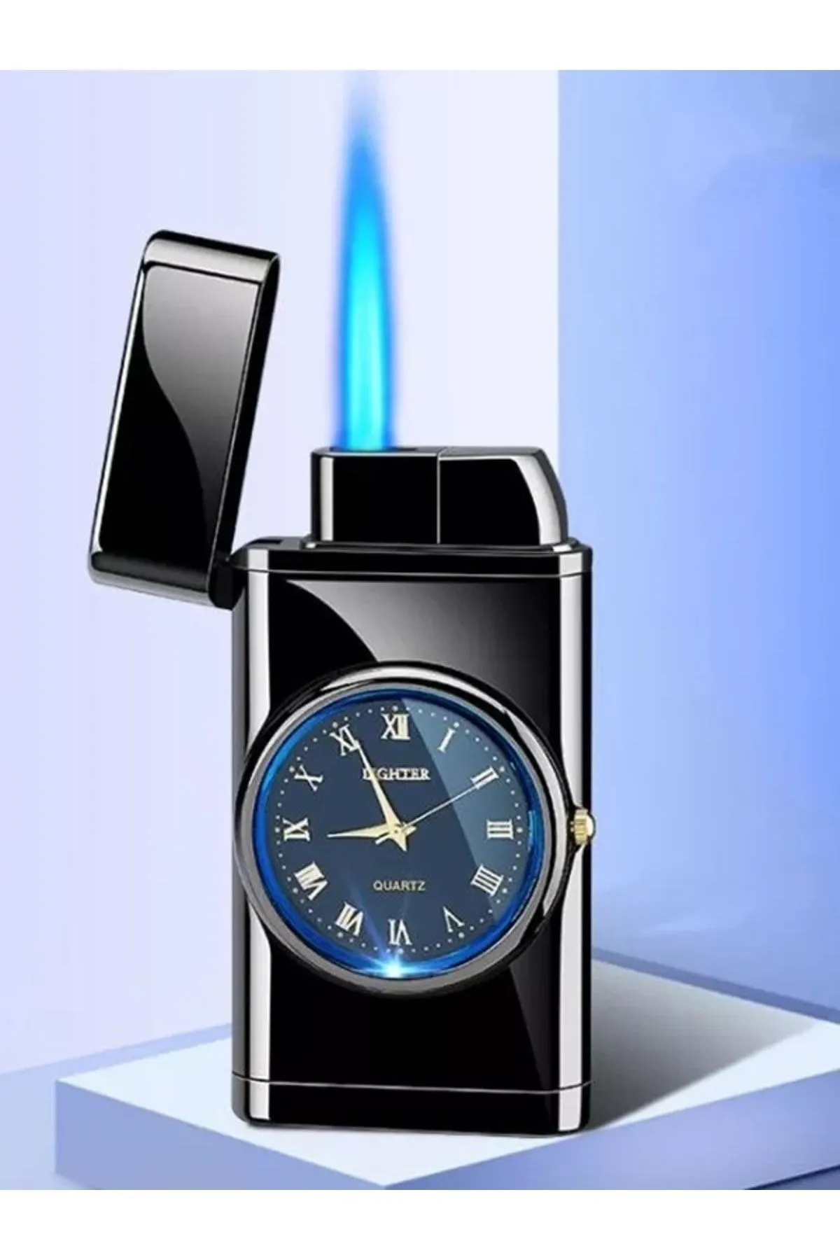 Kişiye Özel Lüks Saatli Pürmüzlü Gazlı Çakmak – Parlak Siyah
