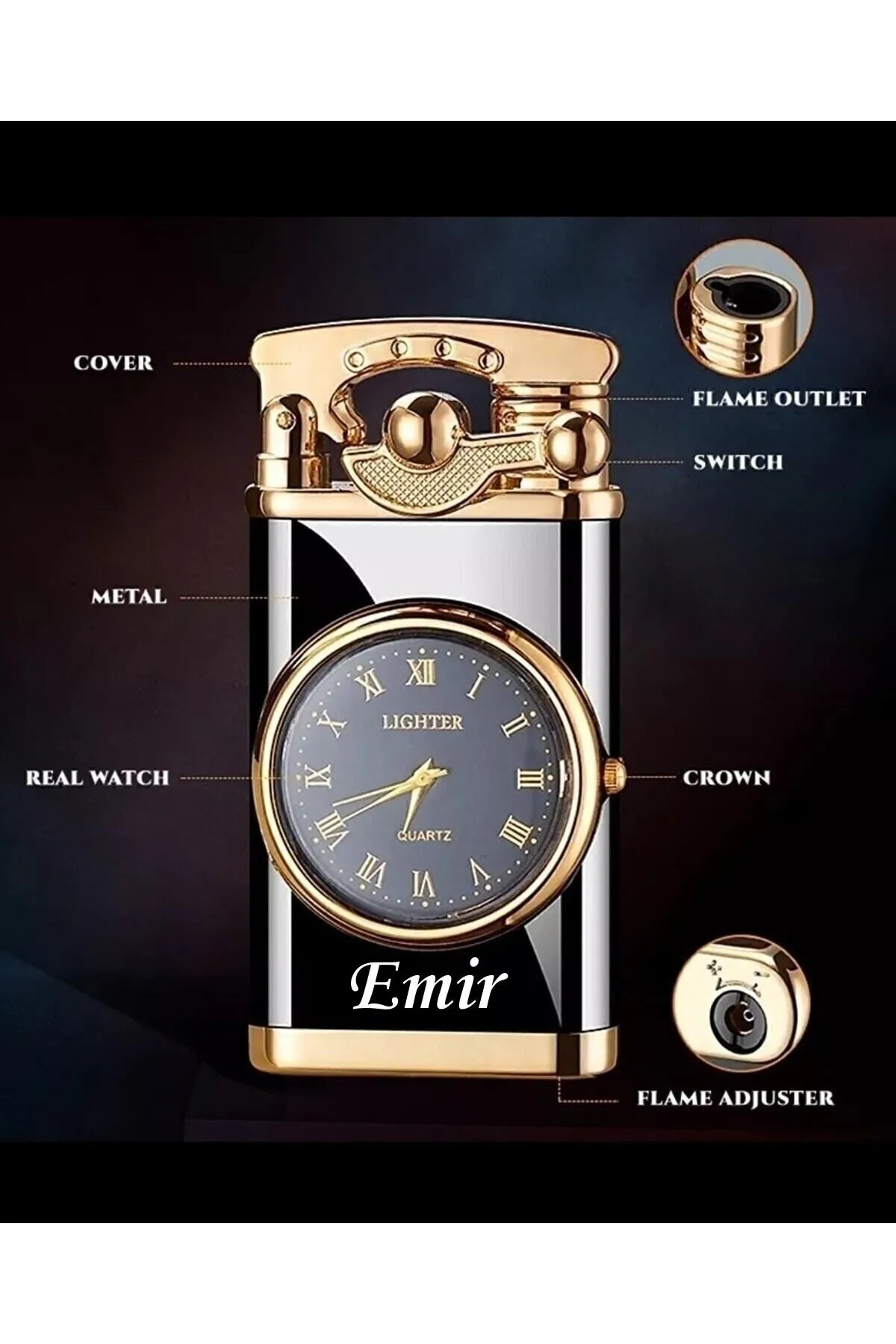 Kişiye Özel İsim Baskılı Özel Yapım Saatli Çakmak Turbo Işıklı Rüzgara Dayanıklı Çakmak NOT : Baskı yapılmasını istediğiniz ismi, ya da aklınıza takılan herhangi bir soruyu satıcıya sor bölümünden yada sipariş mesajları bölümünden bizlere iletebilirsiniz .; Çakmağımız turbodur.; Saati ayarlanabilir.; Sağ tarafında bulunan düğmeden istediğiniz zaman saat ayarlaması yapabilirsiniz.; Kullanımı basit ve şıktır.; Çakmağın alt kısmından (GAZ) dolumu yapabilirsiniz.; Çakmak kapağı açıldığında saatin etrafında ışık yanmaktadır.; özel günlerde sevdiklerinize hediye edebileceğiniz çok şık bir üründür.; Belirtilmeyen ürünlere isim yazılmamaktadır.; Ürünler kontrol edilerek gönderilir, isim yazılan ürünler de iade yoktur.; Kişiye özel baskılı ürünler sipariş verildikten sonra iade edilemez.