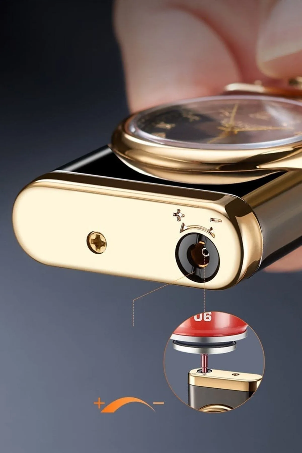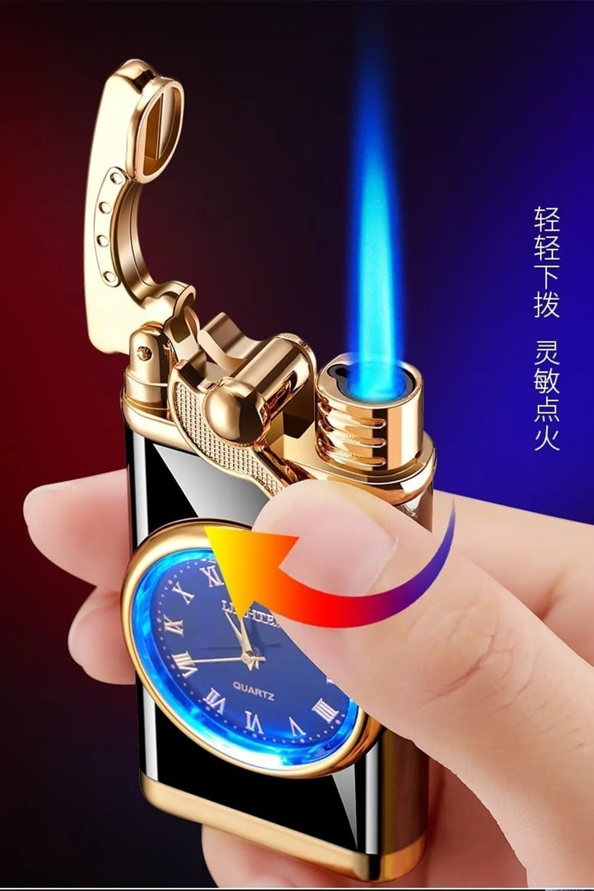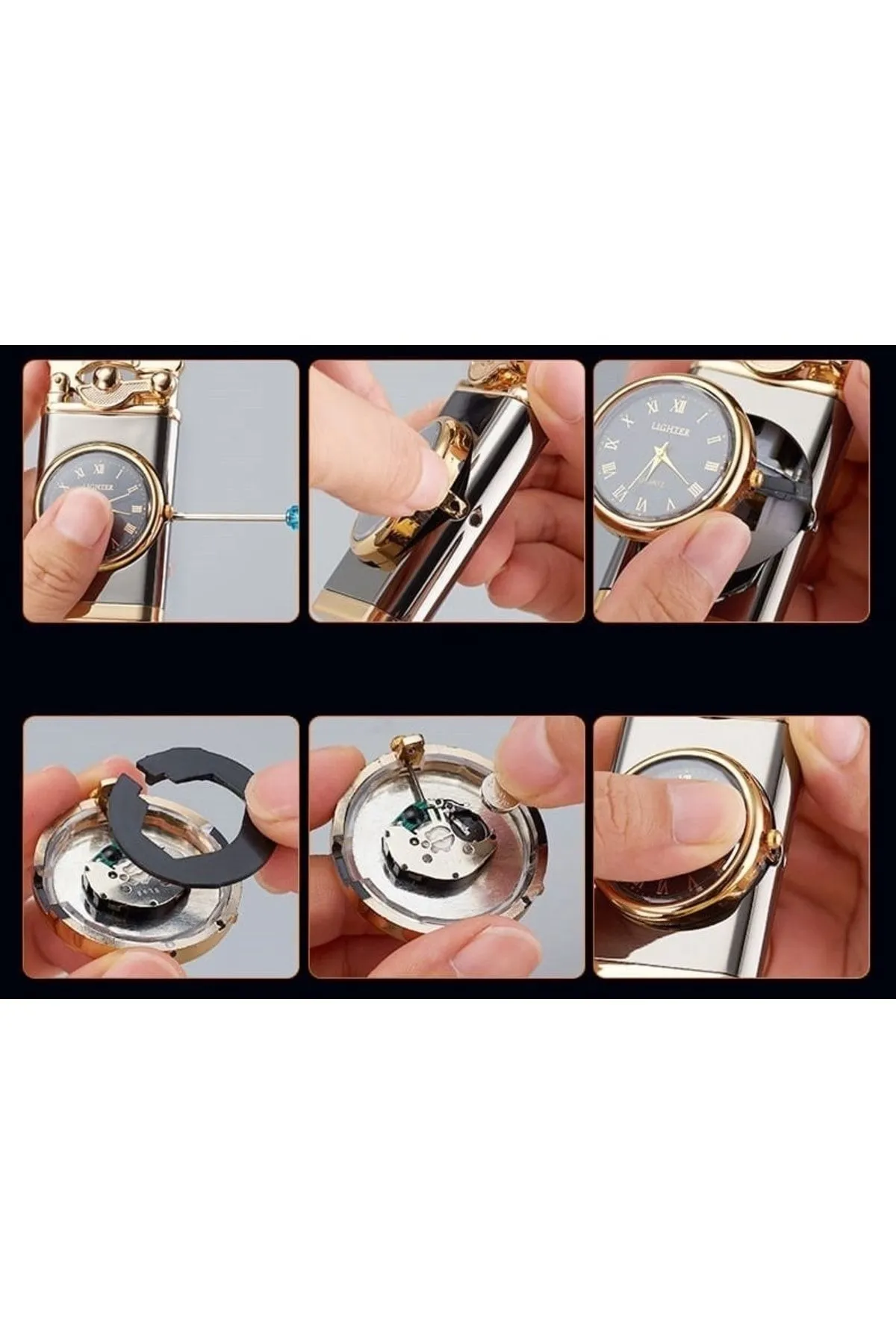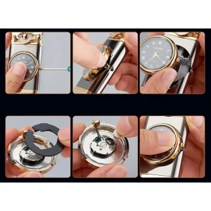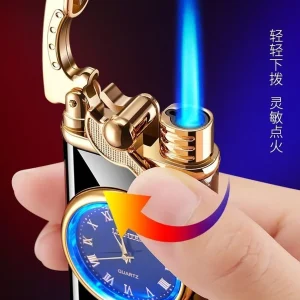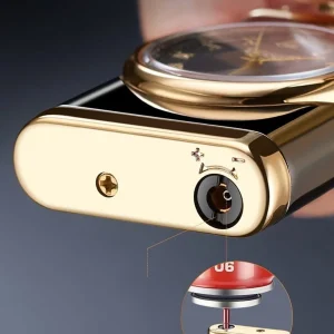 Kişiye Özel Lüks Saatli Pürmüzlü Gazlı Çakmak – Parlak Siyah