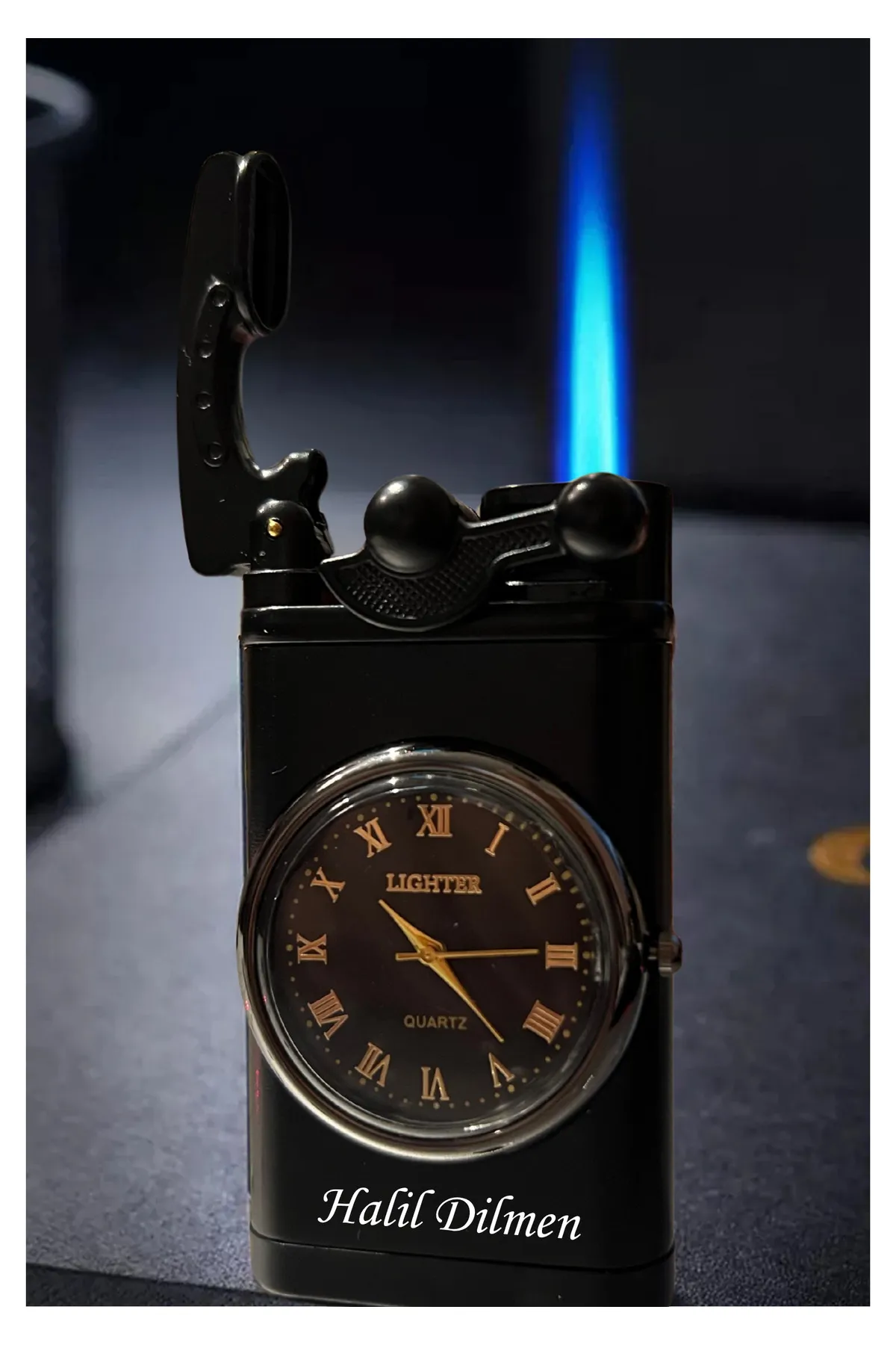 Kişiye Özel Lüks Saatli Pürmüzlü Gazlı Çakmak – Siyah