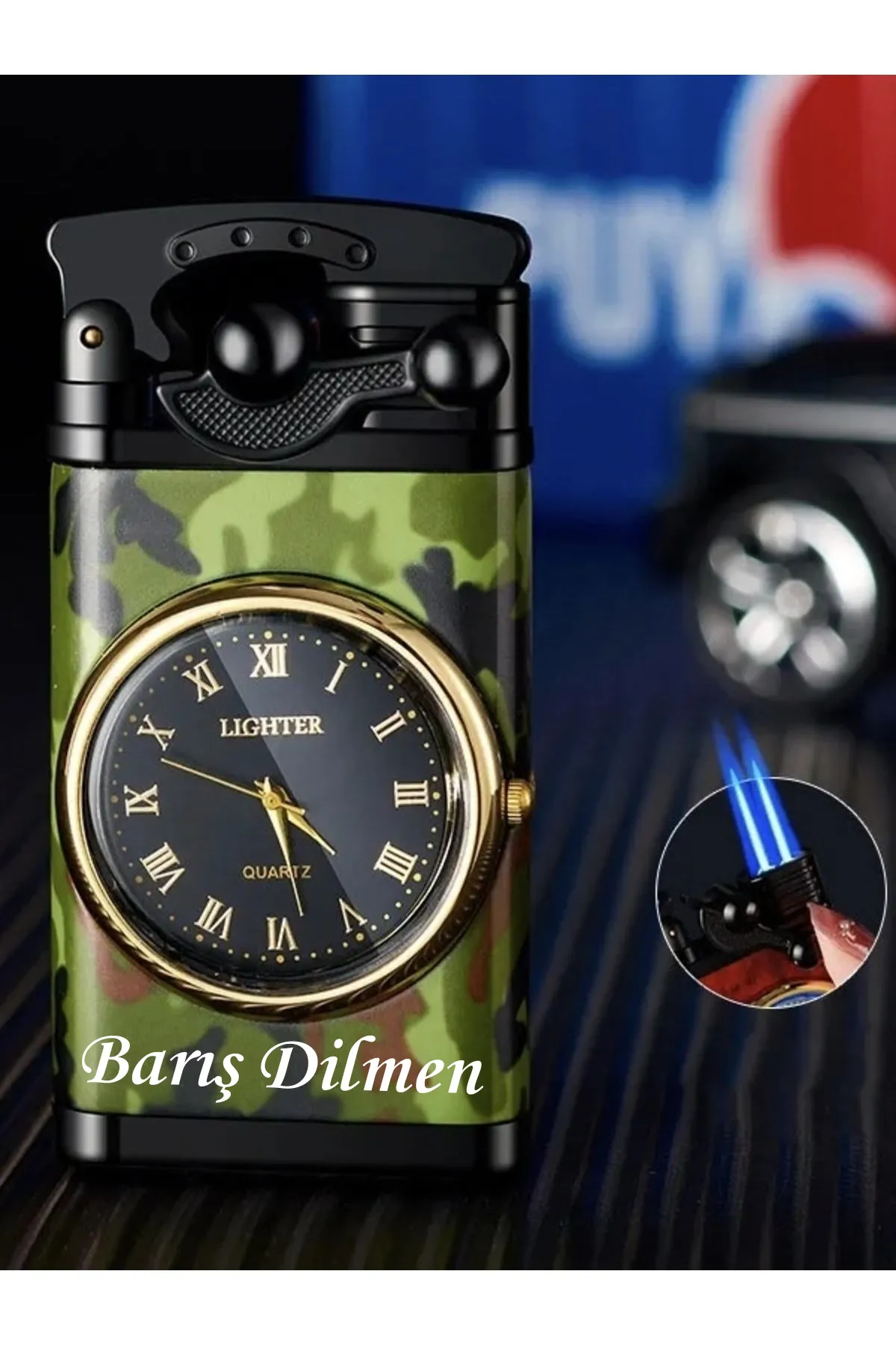 Kişiye Özel İsim Baskılı Özel Yapım Saatli Çakmak Turbo Işıklı Rüzgara Dayanıklı Çakmak NOT : Baskı yapılmasını istediğiniz ismi, ya da aklınıza takılan herhangi bir soruyu satıcıya sor bölümünden yada sipariş mesajları bölümünden bizlere iletebilirsiniz .; Çakmağımız turbodur.; Saati ayarlanabilir.; Sağ tarafında bulunan düğmeden istediğiniz zaman saat ayarlaması yapabilirsiniz.; Kullanımı basit ve şıktır.; Çakmağın alt kısmından (GAZ) dolumu yapabilirsiniz.; Çakmak kapağı açıldığında saatin etrafında ışık yanmaktadır.; özel günlerde sevdiklerinize hediye edebileceğiniz çok şık bir üründür.; Belirtilmeyen ürünlere isim yazılmamaktadır.; Ürünler kontrol edilerek gönderilir, isim yazılan ürünler de yoktur.; Kişiye özel baskılı ürünler sipariş verildikten sonra edilemez.