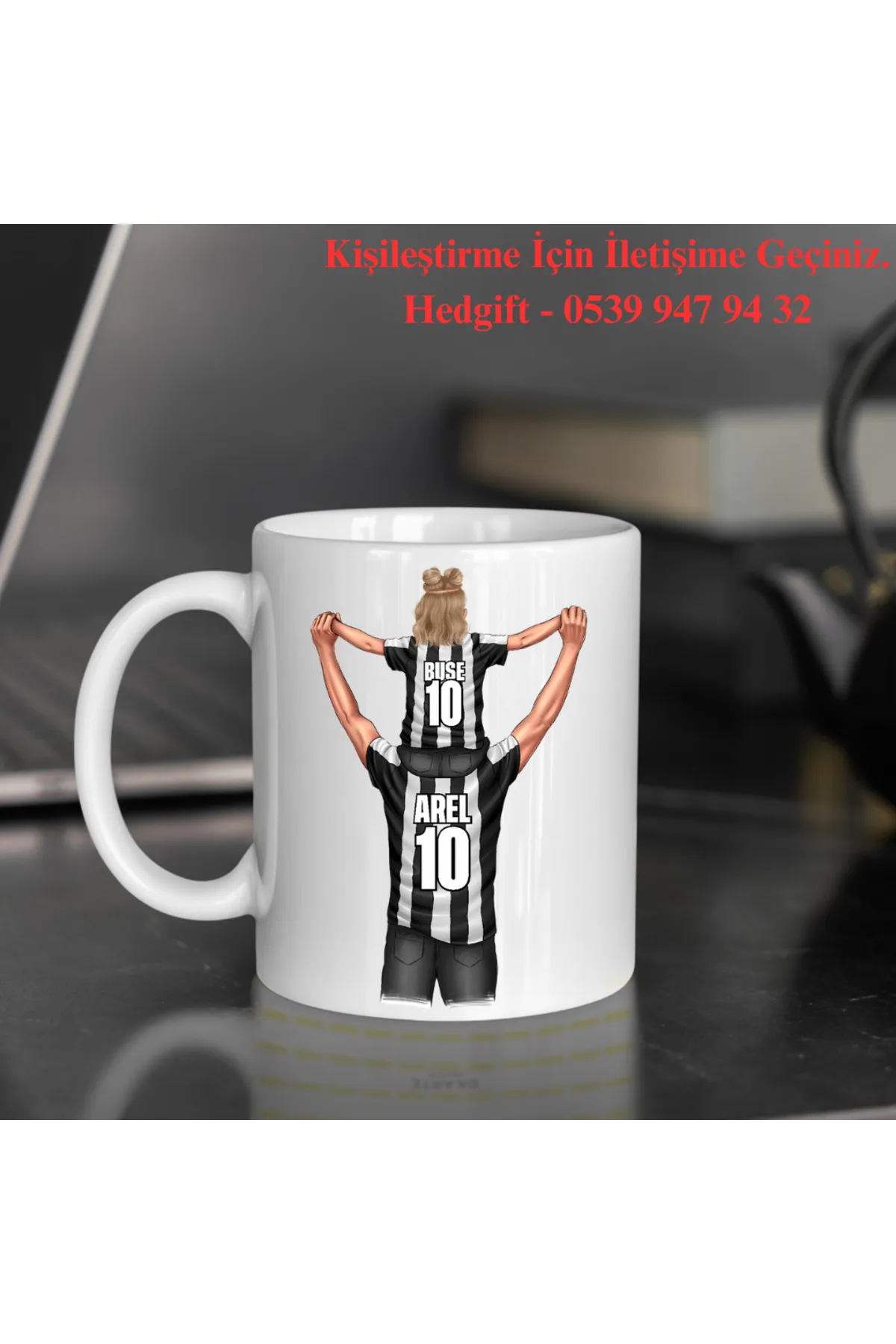 Kişiye Özel Taraftar Baskılı Siyah Beyaz Baba Kız Tasarımlı Hediye Kupa Bardak