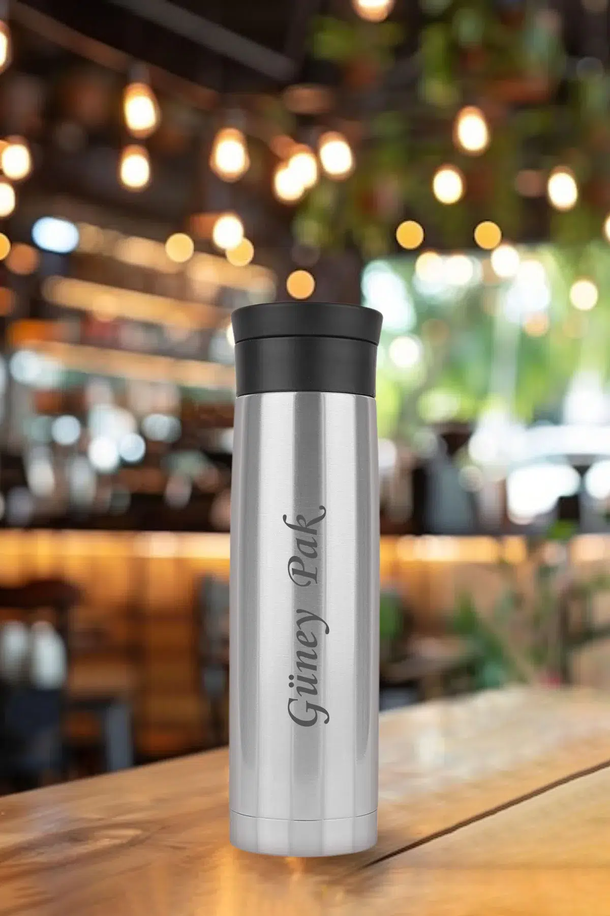 Kişiye Özel Termos Filtreli 500 ml Çift Katmanlı 304 Çelik Botox Içecekler Sıcak Kahve Çay – Gümüş